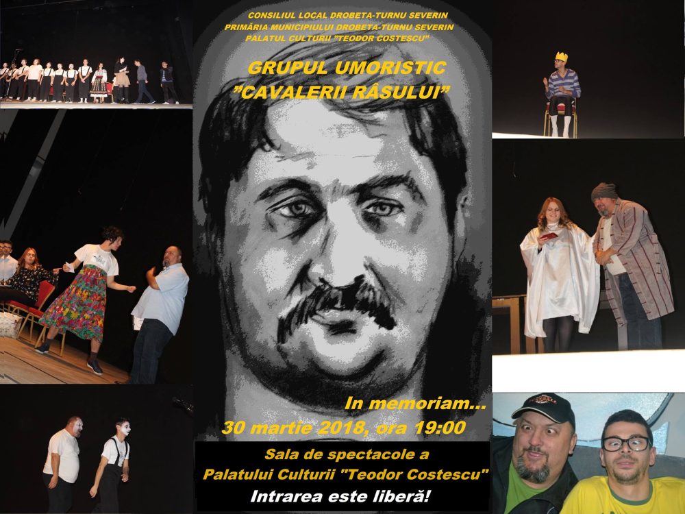 Vă aşteptăm vineri, 30 martie 2018, ora 19:00, în sala de spectacole a Palatului Culturii ”Teodor Costescu”, pentru a ne bucura împreună de un spectacol de comedie, în memoria lui Laurenţiu Bresniceanu, fost lider al acestui grup, trecut în nefiinţă în anul 2014.