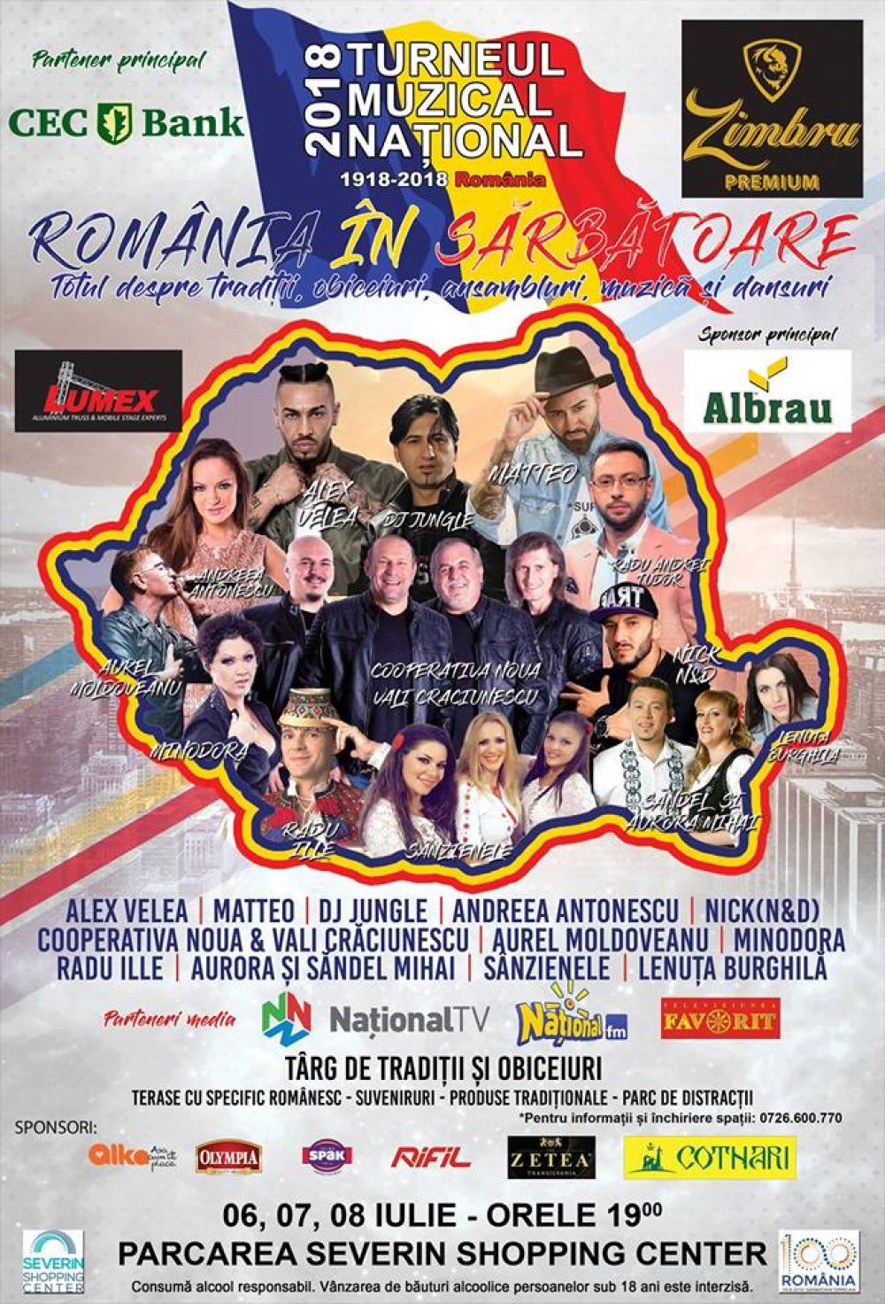Ne vedem în 06, 07, 08 Iulie 2018 în Drobeta Turnu Severin (Parcarea Severin Shopping Center), la cel mai mare turneu muzical din România, dedicat sărbătoririi a 100 de ani de la Marea Unire – „România în sărbătoare 2018”.