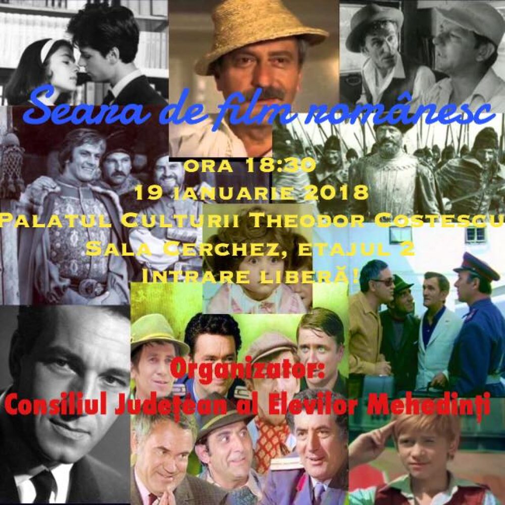 Consiliul Județean al Elevilor Mehedinți are onoarea de a vă invita la Seara Filmului Românesc, ce va avea loc la Palatul Culturii Theodor Costescu, Sala Cerchez la etajul 2.