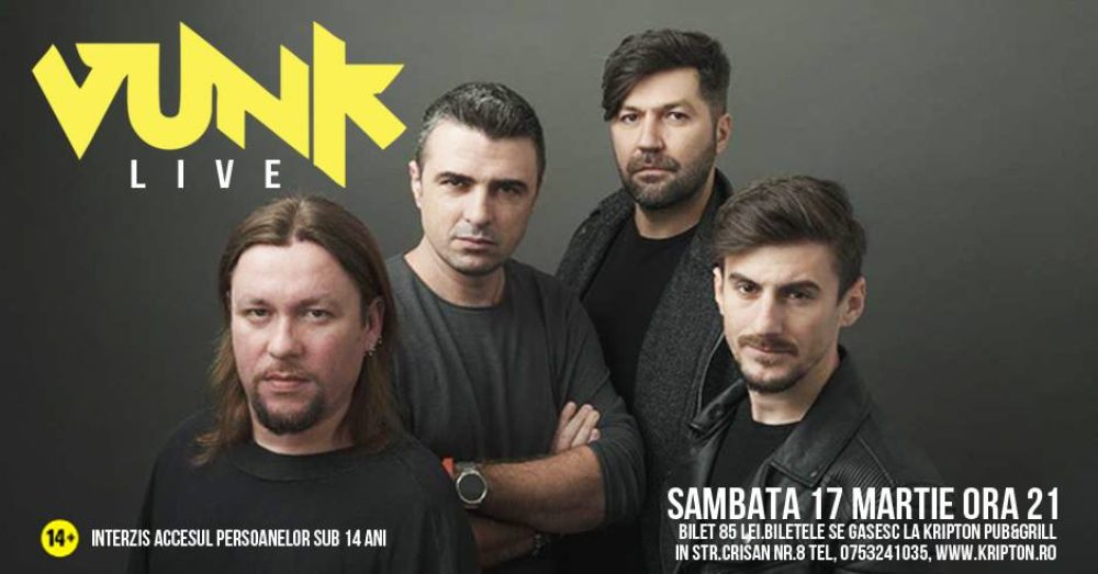 Orice prezentarea este de prisos…..Vunk e Vunk, e bună, e nebună, e tare, e cool, e tot pentru toți! Vino și tu la concertul live Vunk și distreaza-te alături de Vunk și restul orașului.